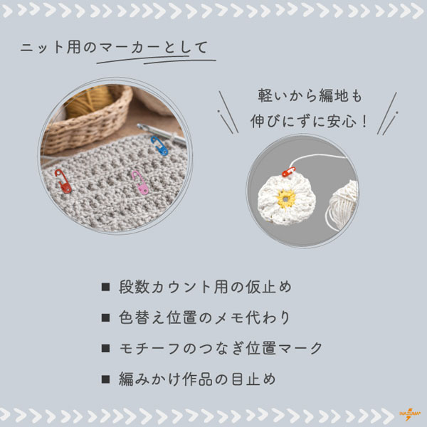生地の仮止めや、ニット作品のマーカーなど使い道はいろいろ!