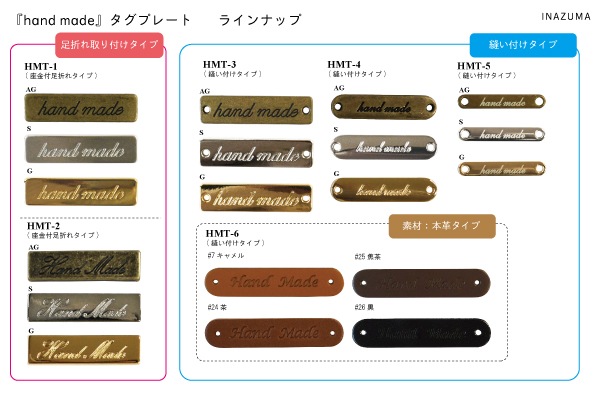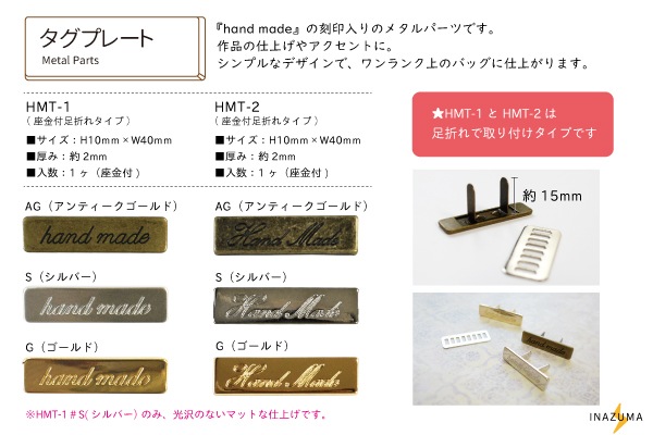- 「Hand made」刻印入りタグです。(足折れタイプ)