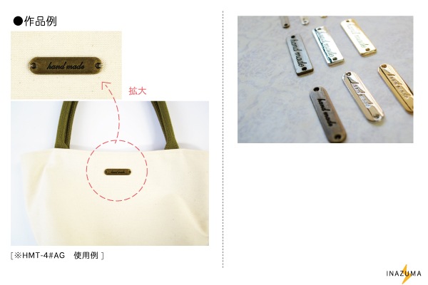 【ネット限定】 「Hand made」刻印入り タグプレート メタルパーツ (縫い付けタイプHMT-8) 1ヶ入