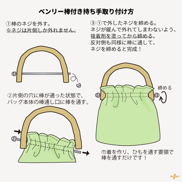 ベンリー棒で簡単にバッグに取り付けられます◎