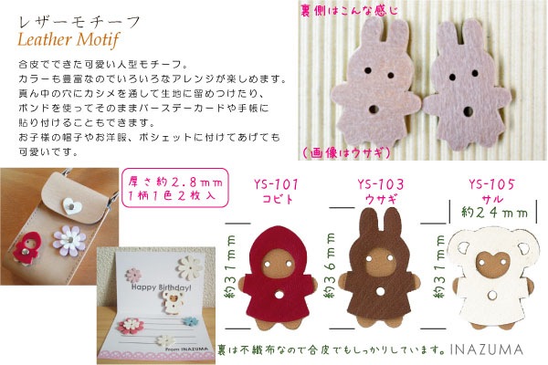 デザイン違いは別ページで販売中。配送方法 メール便OK 関連商品 YS-101(レザーモチーフコビト2ヶ入)