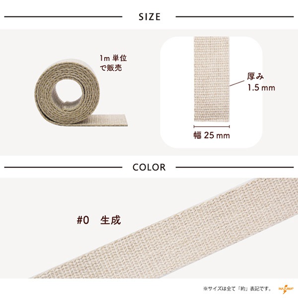 [1m単位]BT-253(約25mm幅リネンバーバリーテープ)