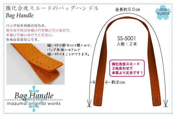 風合いと発色のいい、スエード調の持ち手。仕様 入数 2本 素材 強化合成皮革スエード 注意点 本革より強い強化合皮スエードです。(スエードの2枚合わせです。)