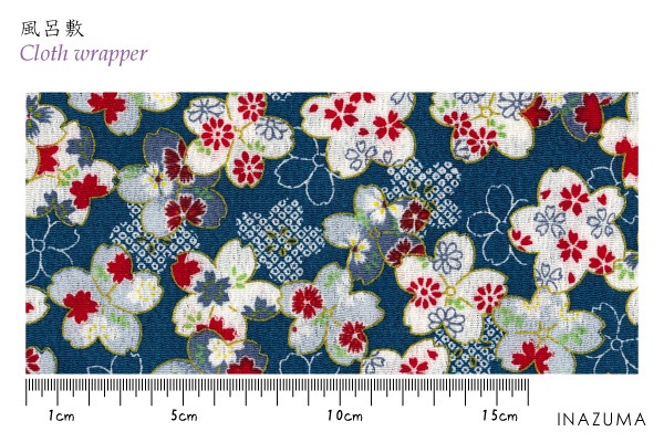 2814#801(京ちりめん風呂敷 金なし 紺地にさくらにウサギ)★お取り寄せ品