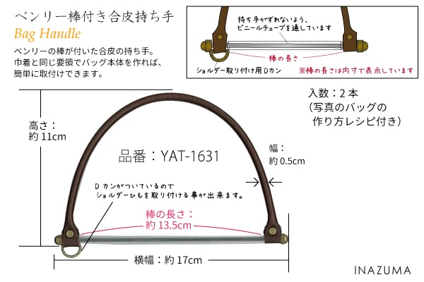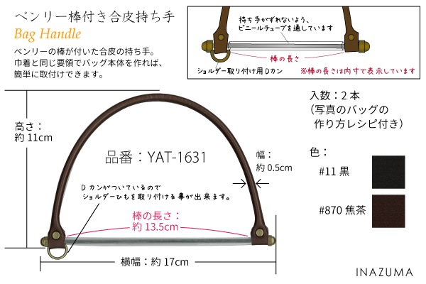 YAS-4000 バッグ持ち手|合成皮革 シンプル 手さげタイプ 中~上級者レシピ付き|40cm