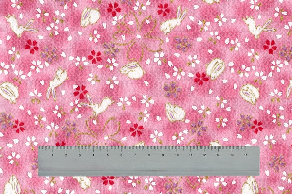 C-71-AG~FG さくらさくらと白兎 カットクロス 京ちりめん 金彩