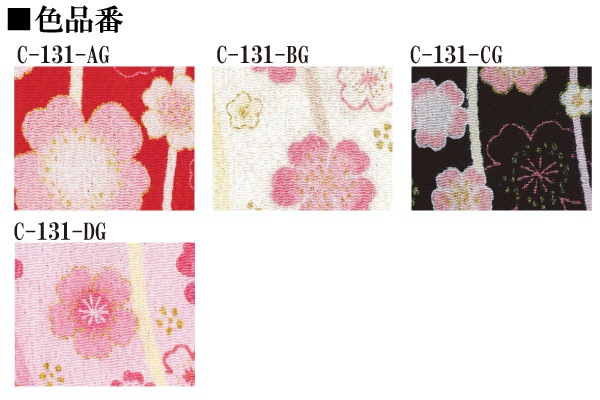 C-131-AG~DG 枝に大小さまざまな梅 反物 京ちりめん 金彩