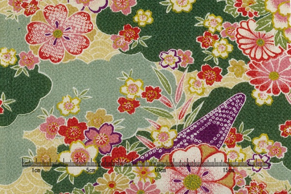 C-159-AG~DG いろんな花と鹿子 反物 京ちりめん 金彩