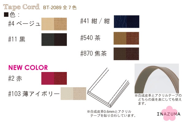 仕様 入数 販売単位1色10メーター単位 素材 アクリル、合成皮革 注意点 合成皮革とアクリルテープどちらの面を表にしても使えます。
