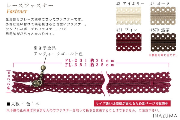 ファスナーのつけ方によって、ベーシックバッグ、ボストンバッグなどといろんな種類の手作りバッグが作れる♪仕様 入数 1色1本 注意点 両面同じ色です。
