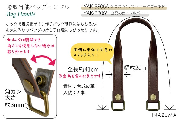 【まとめ買い対象】YAK-3805A(着脱ホック式レザー持ち手) 金具色アンティークゴールド