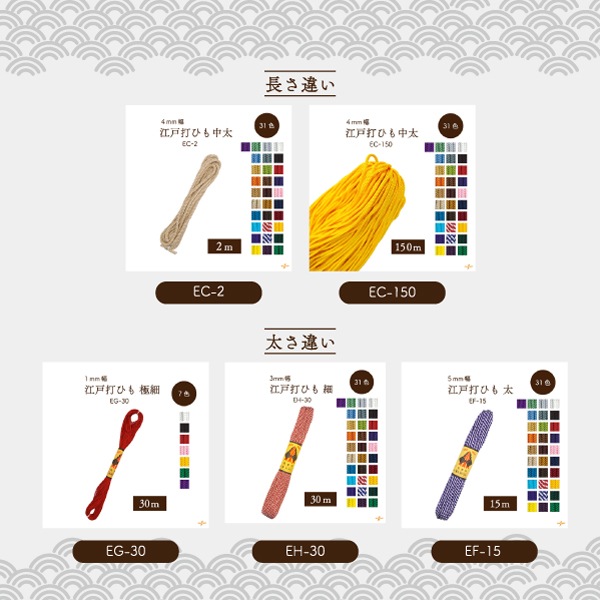 EH-150 細江戸打|巾着ひも 結び手芸 マクラメ|150m1反