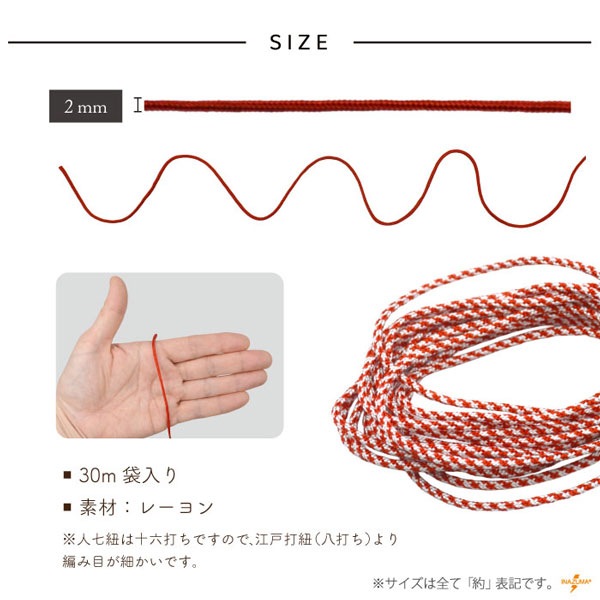 JS-30 人七ひも|堅牢染 巾着ひも 結び手芸 マクラメ|1袋30m