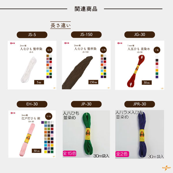 JS-150 人七ひも|堅牢染 巾着ひも 結び手芸 マクラメ|150mカセ