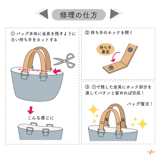 お手持ちのバッグの持ち手交換や、