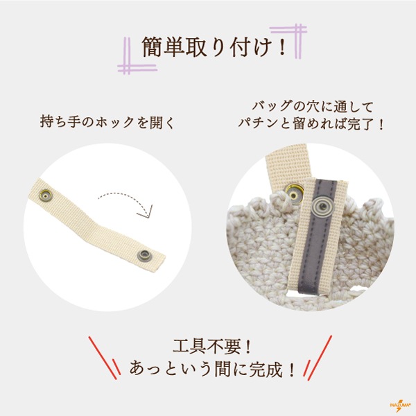 YAT-6020 ホック式持ち手|簡単取り付け ニットバッグにも|全長60cm