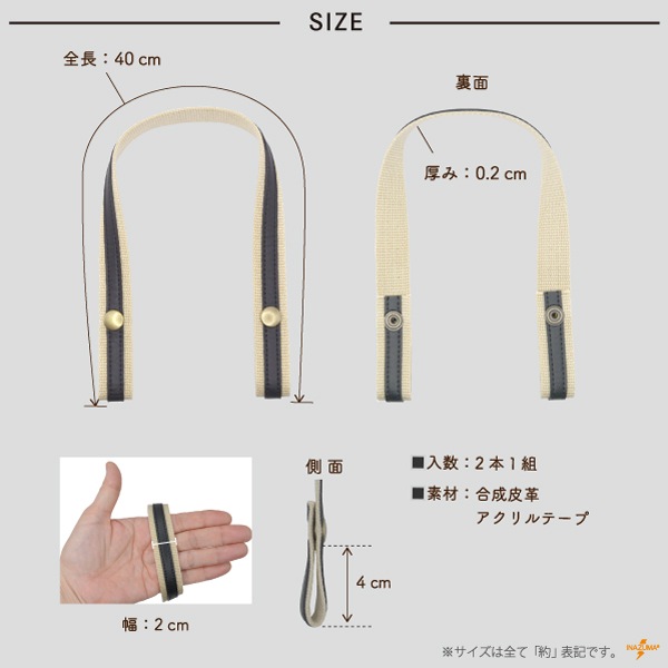 YAT-4121 レザーオンテープホック式持ち手|簡単取り付け ニットバッグにも|全長40cm