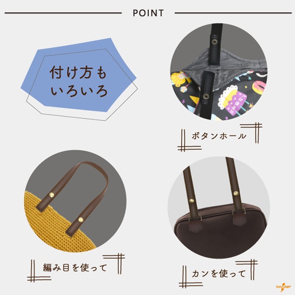 YAT-6121 レザーオンテープホック式持ち手|簡単取り付け ニットバッグにも|全長60cm