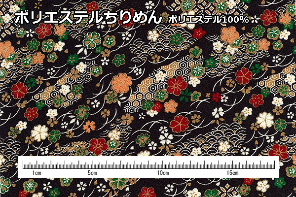 SD-3-A~C 流水とさくら カットクロス ポリエステルちりめん
