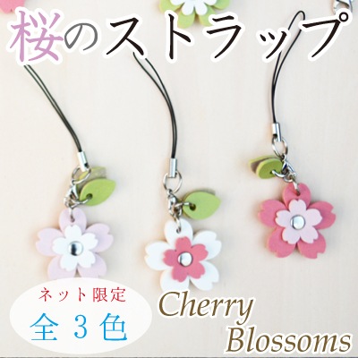 【在庫限り】SG-029(アルファベットラインストーンチャーム付桜の携帯ストラップ・白地にピンク)