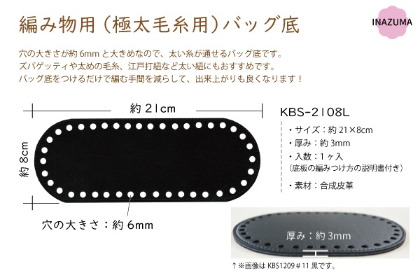 KBS-7L 太糸用編み底|極太糸用バッグ底 編物用 バッグの底板|1枚入