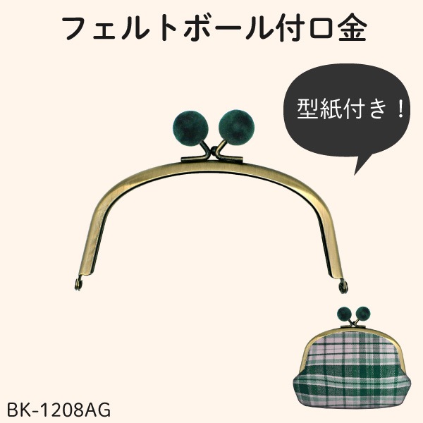【数量限定復活】BK1208 フェルトボール (差し込みタイプ 小物がま口) 横約12cm 型紙・紙ひも付