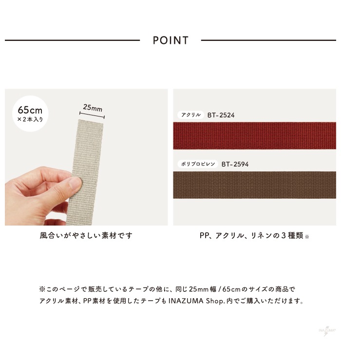 -----------------------その他 エコバッグに持ち手として収納しやすい25mm幅のテープを65cm×2本入に。