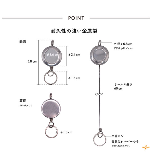AK-68-24(リールキーホルダー 1個入 日本製の強力コード使用 コードの長さ約60cm )