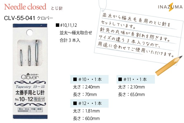 クロバー とじ針 No.10~12 取り合わせ 合計 3本入 CLV-55-041 ★お取り寄せ品