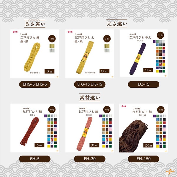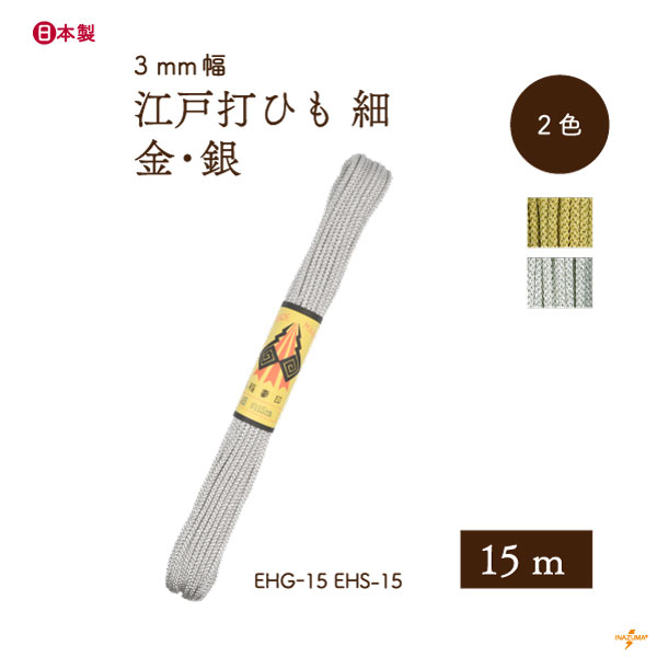 EHG-15,EHS-15 金糸・銀糸 江戸打 細|巾着ひも 結び手芸 マクラメ|15m1反