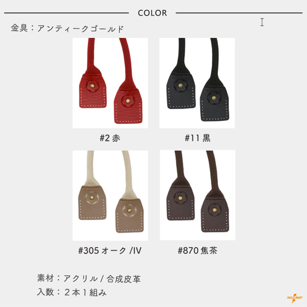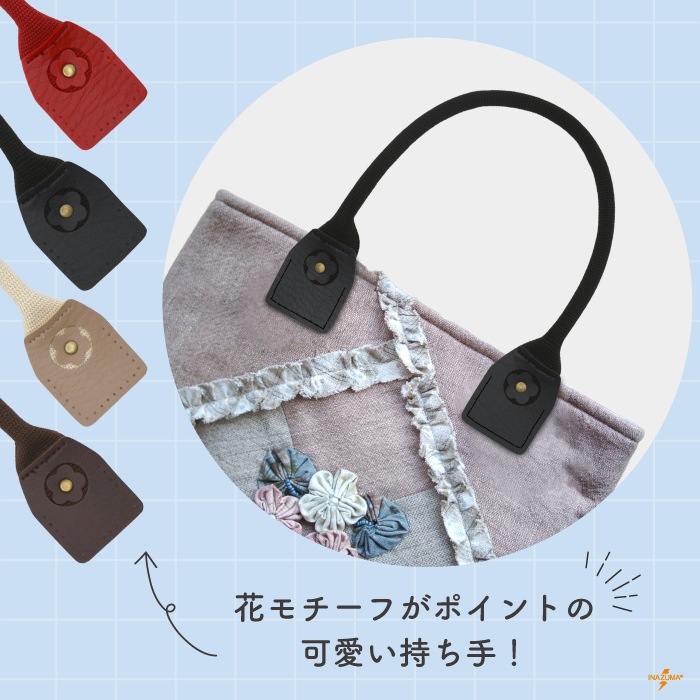 YAT-4049 バッグ持ち手|アクリルテープ×合成皮革 手さげ持ち手 お花モチーフ|全長40cm