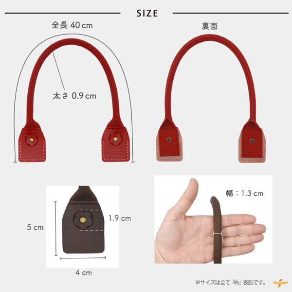 YAT-4014 トマト持ち手|アクリルテープ×合成皮革 手さげタイプ|全長40cm