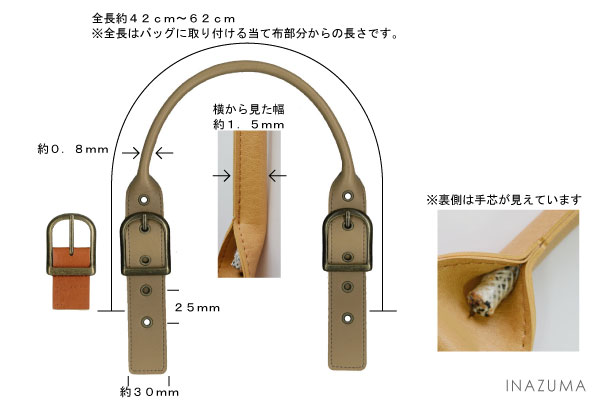 YAK-360手さげタイプ持ち手|合成皮革 手さげタイプ| 型紙レシピ付|全長36cm~39cm