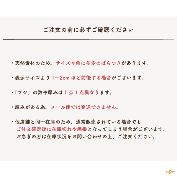 天然素材のため、サイズや色、形に多少のばらつきがあります。