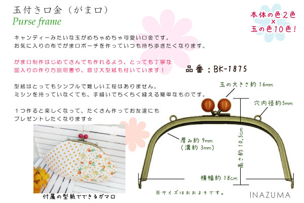 BK-1875(くし型玉付がま口) キャンディー玉付口金
