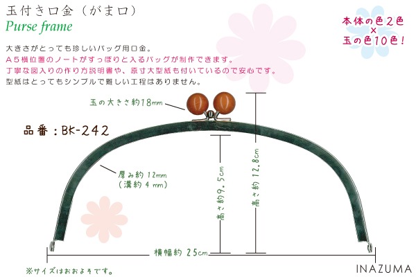 ★ネットショップ限定選べる型紙レシピ★BK-242(くし型バッグ用玉付がま口口金)